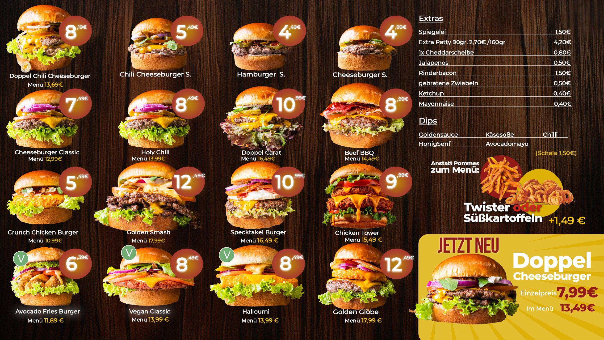 Seit fast 20 Jahren leben wir Gastro – jetzt bringen wir all unsere Erfahrung direkt zwischen zwei Brötchen! Bei G-Burger bekommst du saftige Burgerkreationen mit bestem Rindfleisch aus der Region und frischen, handverlesenen Zutaten.