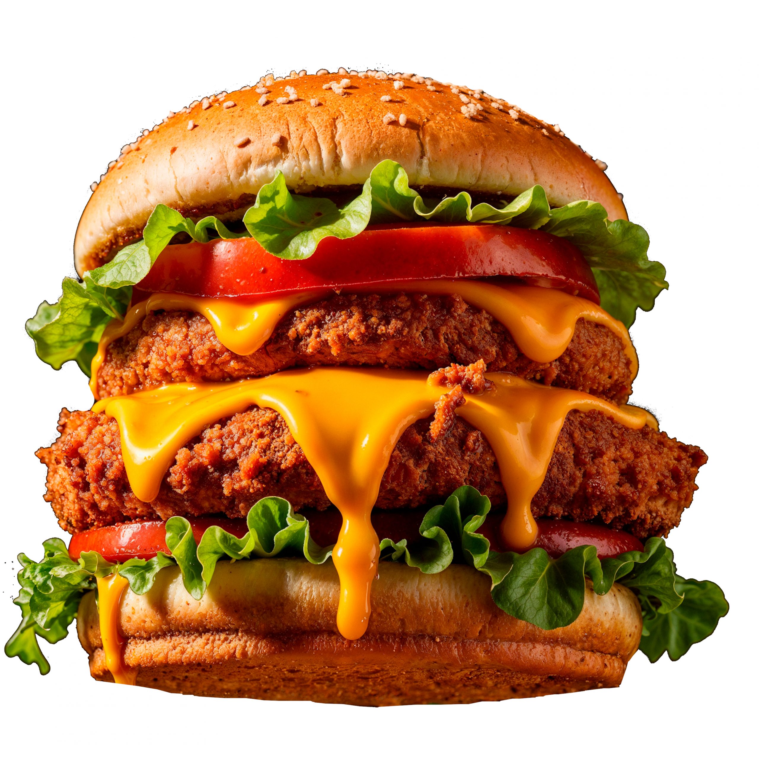 Entdecken Sie unseren Chicken Tower Burger, der mit zwei saftigen 90 und 130 Gramm