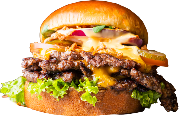 Ein kulinarisches Highlight! Mit 3 x 90 Gramm saftigem Rinderhackfleisch, unserer exklusiven Golden Sauce, frischem Salat, saftigen Tomaten, knackigen Gurken und dreifachem Cheddar-Käse vereint dieser Burger perfekte Aromen. Serviert im butterzarten GoldenBrot Brioche-Brötchen wird er zum unvergleichlichen Genuss. Ein Muss für alle Burger-Fans!