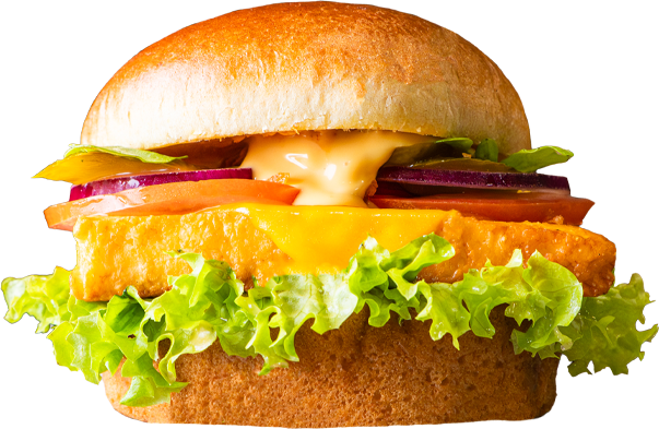 Entdecke unseren veganen Burger: ein 120 g veganes Patty, knackige Salatherzen, saftige Tomaten, eingelegte Essiggurken, veganer Cheddar-Käse, frische Zwiebelringe und ein goldbraunes Brioche-Bun. Ein Geschmackserlebnis, das dich garantiert heiß auf mehr macht!